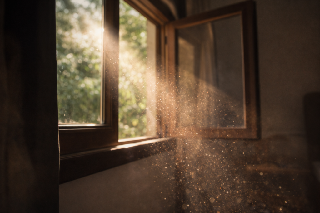 Imagine entering a room where sunlight is coming through the window. If there is dust in the room, you can see tiny particles floating in the light. The same thing happens in the sky — just on a much bigger scale.